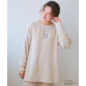 パジャマ ルームウェア 「PEANUTS/ピーナッツ」SNOOPY/スヌーピー刺繍ケーブルフリース長袖トップス/ルームウェア(上下別売り)2025A