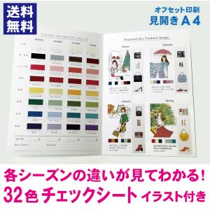 パーソナルカラー 2つ折32色チェックシート・イラストあり 5枚入り【オフセット印刷版】カラーアナリスト向け