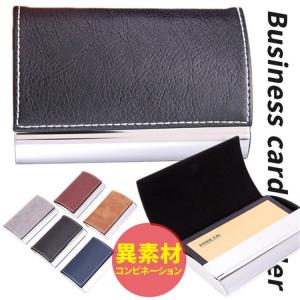 ビジネスカードケース 名刺入れ ツートンカラー PUレザー ステンレス スタイリッシュ ビジュアル カード入れ レザー セール