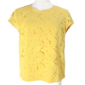 ルルウィルビー Loulou Willoughby 美品 レースプルオーバーシャツ ブラウス 半袖 2 M相当 黄 イエロー X レディース