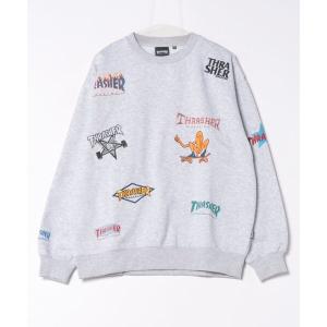 トレーナー スウェット 「THRASHER/スラッシャー」裏起毛バック刺繍 総柄プリントスウェットプルオーバー メンズ レディース
