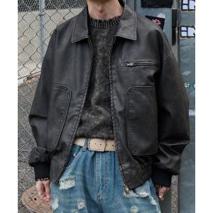 ブルゾン アウター vintage like double zip flight jacket ビンテージライク合成皮革フライトジャケット メンズ レ