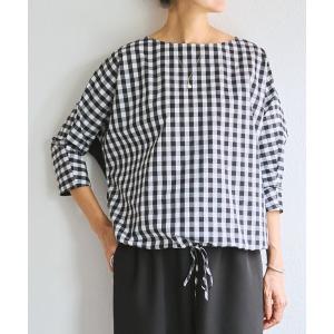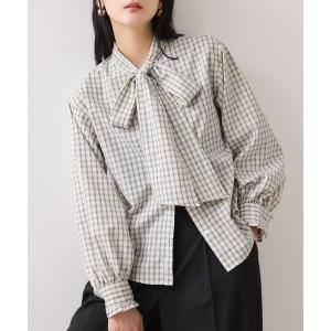 ブラウス シャツ チェックボウパフブラウス レディース