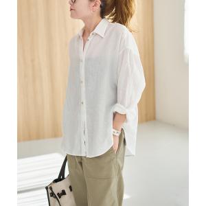 ブラウス シャツ 「程よくすっきりサイズ」 80リネンカシュクール ミディシャツ レディース
