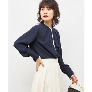ブラウス シャツ 「ハニぽか」あったか裏地配色ボウタイブラウス レディース