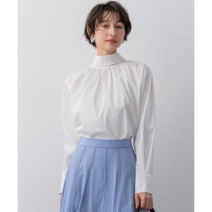 ブラウス 長袖 レディース スタンドカラー オフィス きれいめ ビジネス シャツ トップス ハイネック フロントタック オケージョン ギャザー 30代 40代 秋 冬