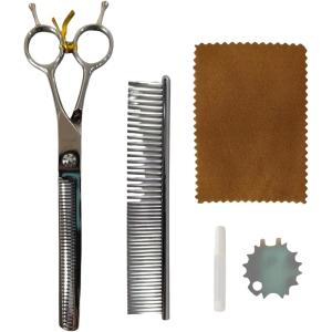 ペット はさみ トリミング カーブ ステンレス製 左右兼用 犬 猫 お手入れ用 コーム セット (B)