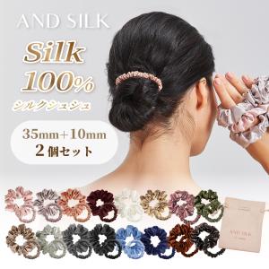 シルクシュシュ セット 2本セット(35mm・10mm) シルク100% 6A 25匁 大人っぽい 小さめ シンプル ヘアゴム ANDSILK 髪にやさしい ヘアアクセサリー