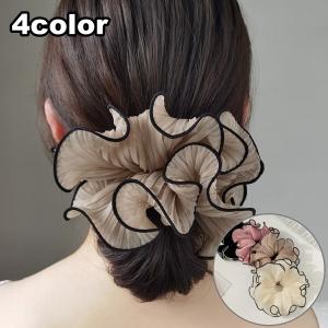 シュシュ ひらひら シンプル ヘアゴム ヘアアクセサリー ヘアアクセ まとめ髪 ポニーテール 無地 バイカラー ボリューム 大きめ