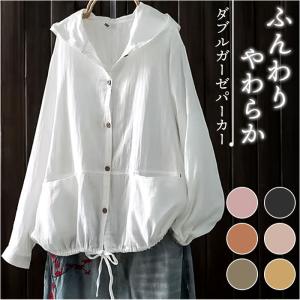 パーカー レディース フード付き 通販 上着 アウター ジャケット 無地 薄手 ダブルガーゼ ガーゼ トップス ゆったり ジャンパー 綿 ブルゾン 羽織 長袖 春