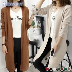 ニット レディース ロング丈 カーディガン 長袖 秋 ニットコーデ ガウン 秋コート 無地 おしゃれ 着痩せ 上品 大人 通勤 OL ママコーデ 20代 30代 40代