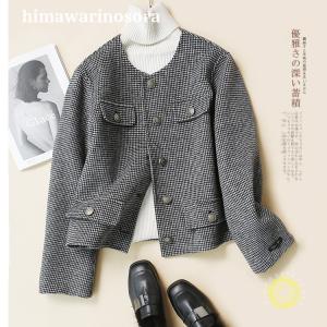 アウター ジャケット レディース ノーカラー フォーマル 通勤 オフィス グレンチェック ノーカラージャケット