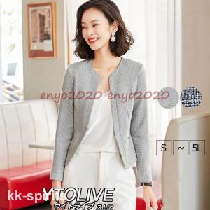 ツイードジャケット レディース ノーカラージャケット ノーカラー きれいめ 大きいサイズ 長袖 ライトアウター ママスーツフォーマル 春 秋 冬 結婚