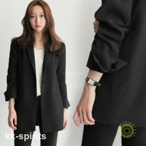 テーラードジャケット レディース 春 夏 春夏 黒 ジャケット アウター コート ブラック ロング丈 ミディアム丈 大人 20代 30代 40代 OL ママ 母