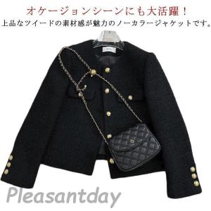 ツイード 黒 ノーカラー ツイード レディース 秋 春 アウター ショート丈 ママスーツ フォーマル ママ 卒業式 ノ