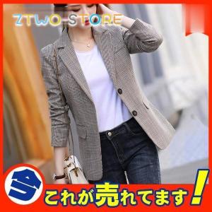 テーラードジャケット レディース 秋 長袖 アウター カジュアル グレンチェック コート 着痩せ オフィス 通勤 高級感