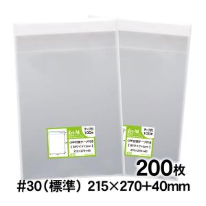 OPP袋 B5ワイド 2cm巾広 テープ付 200枚 30ミクロン厚(標準) 215×270+40mm 透明袋 国産