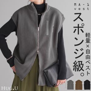 ベスト ニット 軽量 レディース トップス ジレ スポンジニット レイヤード 重ね着 ジップアップ ノースリーブ 半袖 ダブルジップ ニットベスト ロング