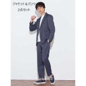 セットアップ 「上下セット」メンズライトセットアップ デニムライク ネイビー メンズ