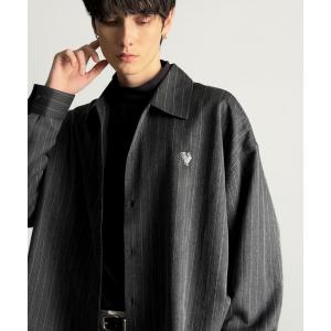 シャツ 「Classical Origin」「ウールライク素材。」刺繍入りストライプ柄オーバーサイズシャツ(長袖)/Wool-Feel Fabric