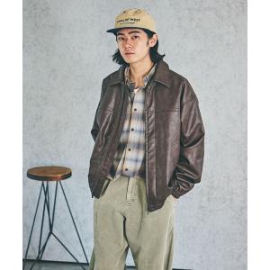 ブルゾン アウター ヴィンテージライクエコレザージャケット メンズ