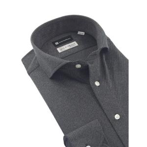 フォーマル シャツ 「完全ノーアイロン」長袖アイシャツ デニムライク ブラック/ブラウン/ネイビー 「ストレッチ」「ウォッシャブル」 メンズ