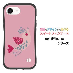 スマホケース iPhone 16e 耐衝撃 ハイブリッドケース ストラップホール付 ピンクバード イラスト キャラクター 鳥 とり トリ ピンク かわいい