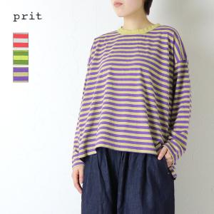 プリット prit リサイクル天竺カラーボーダークルーネックワイドプルオーバー P91620 日本製 長袖 Tシャツ レディース 2026春夏