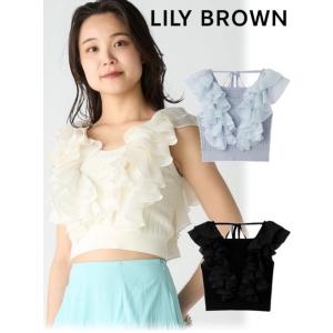 (セール40%OFF) Lily Brown / リリーブラウン 透かしフリルニットトップス 24春夏. LWNT242112