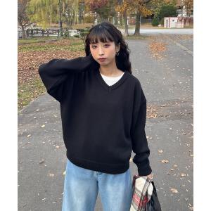 ニット セーター デイリーVネックカラーニット レディース