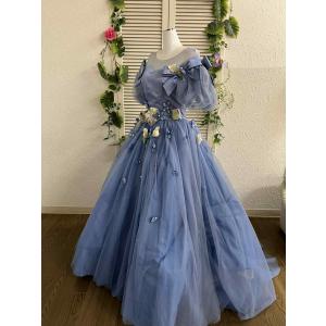 貸衣装処分品 カクテルドレス青青紫 リボンがキュート 7号