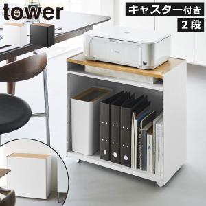スリムワゴン デスクワゴン サイドワゴン おしゃれ プリンター 収納台 デスク下収納ワゴン キャスター付き 木製 山崎実業 隠せるテレワークワゴン タワー tower