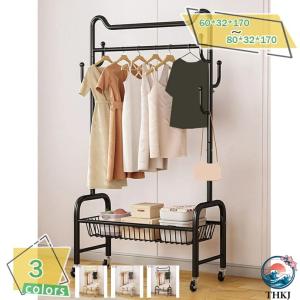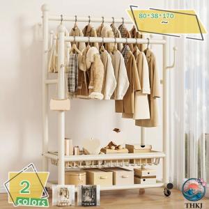 ハンガーラック 頑丈 キャスター付き コートハンガーラック スリム おしゃれ サイドフック バスケット付き 洋服ラック 大容量 スチール製洋服スリム 室内物干し