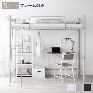ロフトベッド シングル 〔ベッドフレームのみ ライトグレー〕 ベッド スチール 頑丈 宮付き コンセント付き 組立品