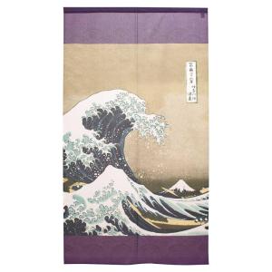 のれん 葛飾北斎 神奈川沖浪裏 大 紫 約85cm×約150cm (91286)