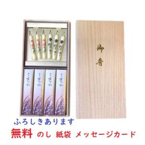 日本香堂 銘香芝山桐箱絵ローソクセット のし名前印刷無料付 新盆 喪中見舞い 四十九日 1周忌 法事の御供え物 ご進物 贈答用線香 御中元 お歳暮 ギフト