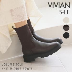 ブーツ レディース 厚底 秋冬新作 ニットブーツ ミドル丈 ショートブーツ 厚底ブーツ 厚底 トラックソール ボリュームソール ZOZO 防寒 20代 30代 40代 50代