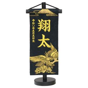 名前旗 金彩 富士に鷹(特小)黒 刺繍名入れ 生年月日入り 高さ25cm [端午の節句/子供の日]