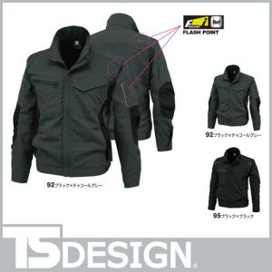 作業 着 TS Design 藤和 84636 ストレッチタフワークジャケット 作業服 ジャンパー ブルゾン 秋冬 通年 男女兼用 ユニフォーム 黒 大きいサイズ 3L 4L 5L 6L