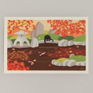 秋 たびねこ ポストカード 庭園の鯉 (c)もりとしのり PW-602a 絵はがき メール便 ねこ 猫 ネコ
