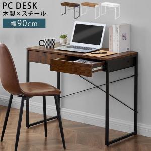 デスク 引き出し コンパクトデスク 書斎机 作業台 勉強机 収納 リビング学習 タブレット ノートPC A4収納 木製 メラミン スチール シンプル 幅90