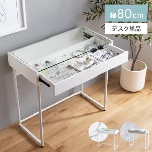 デスク 机 パソコンデスク テーブル ディスプレイ ガラス 収納 引き出し 可愛い 1人暮らし ワンルーム 化粧品 ドレッサー 勉強机 大理石調 マーブル