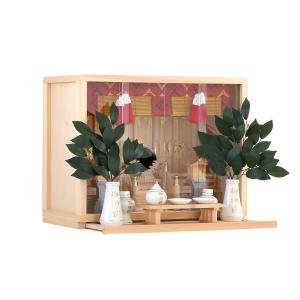 神棚セット 箱宮 三社 壁掛け 16号 御簾付き 『天桔梗』 LED灯籠 金文字神具セット