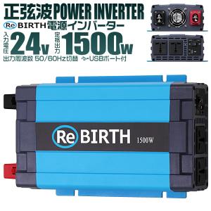 正弦波インバーター バッテリー ポータブル電源 防災 非常用電源 車中泊 アウトドア 24V 定格1500W DC24V / AC100V 50Hz/60Hz切替可能 USBポート付
