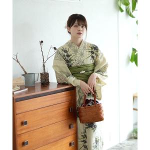 浴衣 レディース レトロ 30代 40代 50代 吸水速乾 ポリエステル 「ベージュグリーン ポピー」 Fサイズ LLサイズ 単品 大きいサイズ (メール便不可)ss2512ykl15