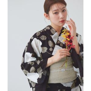 浴衣 レディース セット ニコアンティーク 浴衣3点セット かすれアネモネ ブラック×マスタード トール Lサイズ 浴衣セット(ゆかた・帯・下駄)高身長