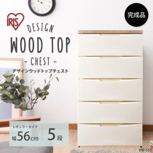 チェスト 5段 ランドリーチェスト アイリスオーヤマ 北欧 タンス 収納 収納ケース 引き出し 白 完成品 デザインウッドトップ 衣類収納 DW-555
