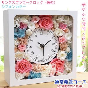 退職祝い 花 名入れ サンクスフラワークロック 角型 シフォンカラー 2週間発送コース プリザーブドフラワー ガラス 刻印 プレゼント 女性 退職 定年 記念品 母