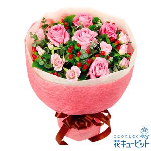 【お祝い】花キューピット 敬老の日 誕生日 記念日 結婚祝い 歓送迎 還暦 開店開業 卒業入学 生花 ピンクバラの花束