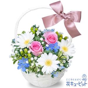 【お祝い】花キューピット 敬老の日 誕生日 記念日 結婚祝い 歓送迎 還暦 開店開業 卒業入学 生花 ピンク色のバスケットアレンジメント